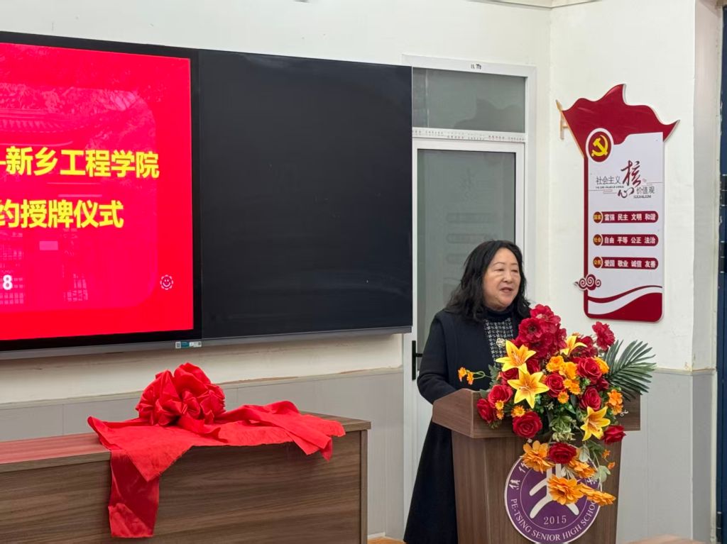 仪式伊始,北清中学党支部书记耿华春致欢迎辞,对学院代表表示欢迎,指出此次共建是推动高等教育与基础教育融合的生动实践,既能为师范生提供实战平台,也能助力北清中学对接优质资源、提升教研水平,期待双方双向赋能、共赢发展。梁晓冬院长随后致谢北清中学的支持,她强调一线课堂是师范生锤炼技能的关键阵地,学院将依托实践基地,组织师范生参与一线教学,同时发挥高校优势,在教学改革、课题研究等方面与北清中学携手发力,助力基础教育提质增效。随后,双方签署《教育实践协议书》,梁晓冬院长向北清中学授予“新乡工程学院大学生实践教学基地”牌匾,合作迈入实质性阶段。