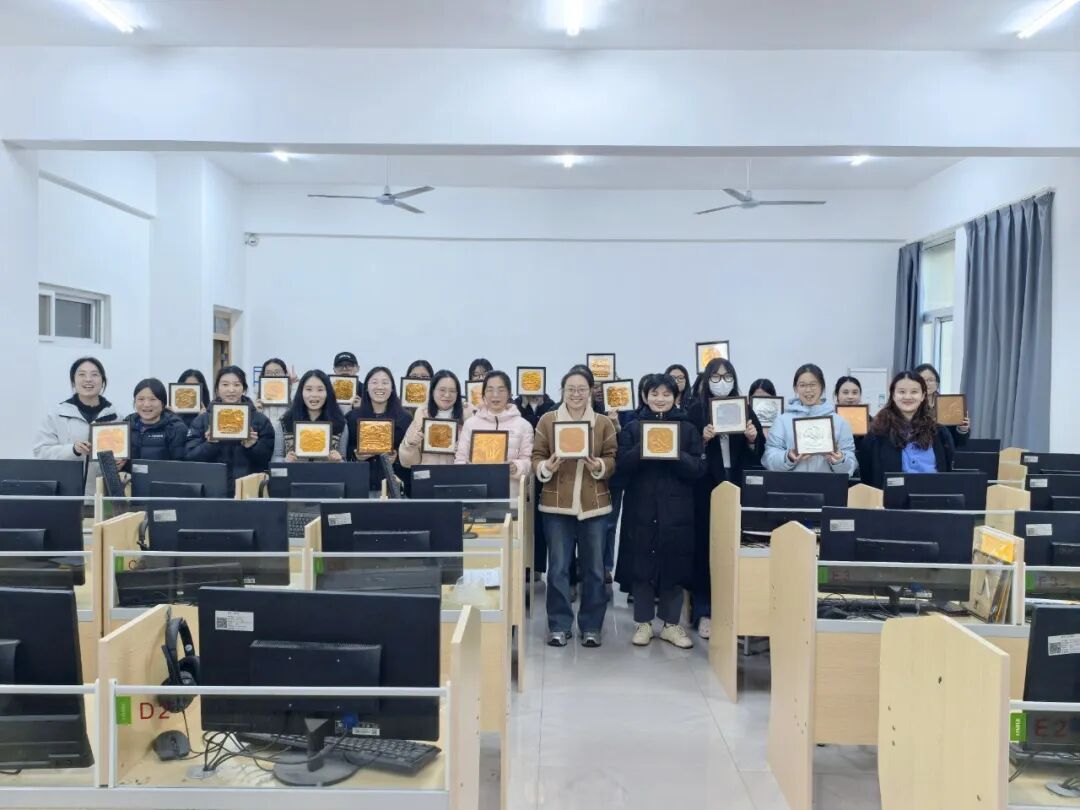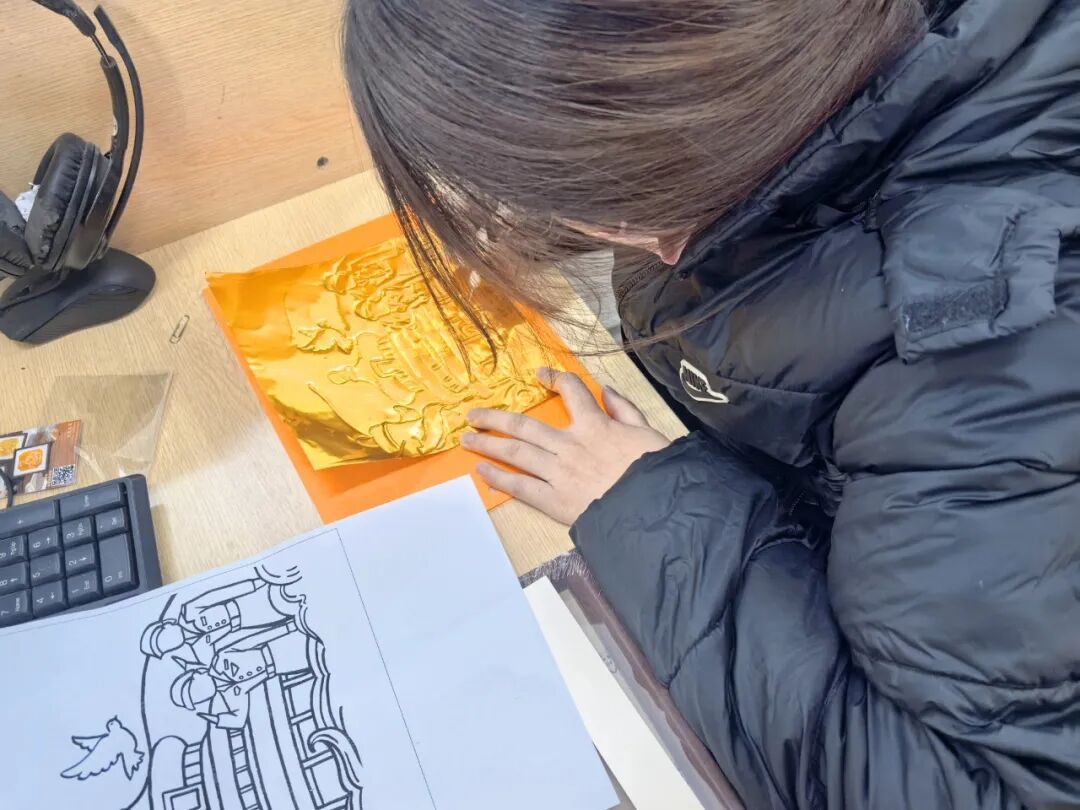 随后,“红色纹样錾刻”实践环节将活动推向高潮。在板上精心雕琢的“和平鸽”等象征革命精神的红色纹样。这不仅是对传统工艺的体验,更是对爱国精神的致敬。活动现场,同志们互相交流技巧、分享感悟,一件件饱含心意的作品陆续完成,刻的红色印记仿佛诉说着跨越时空的家国情怀。