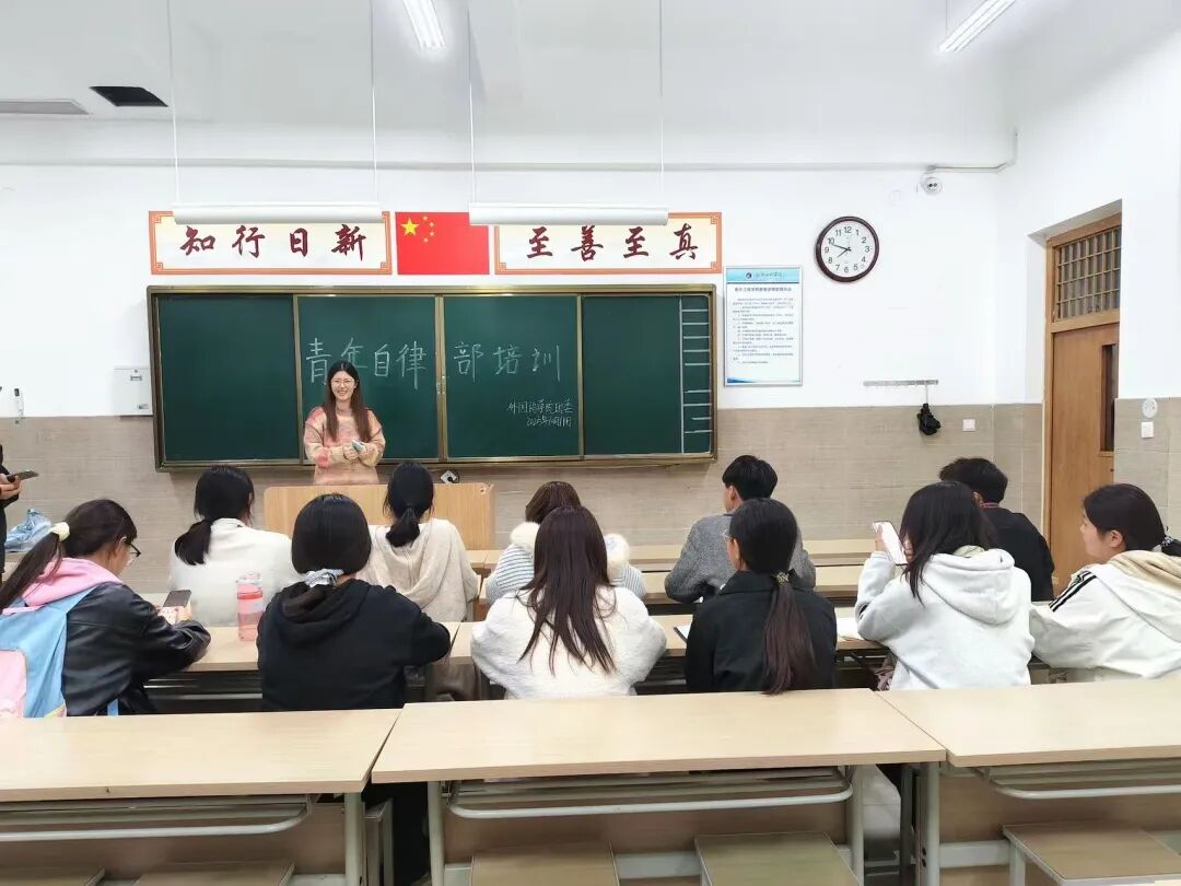 为明确外国语学院团委学生会部门的工作与职责、提高工作效率,外国语学院团委学生会于10月11日在树人楼202教室开展青年自律部干部培训,本次培训由青年自律部部长周爽主持,全体学生会成员参会。