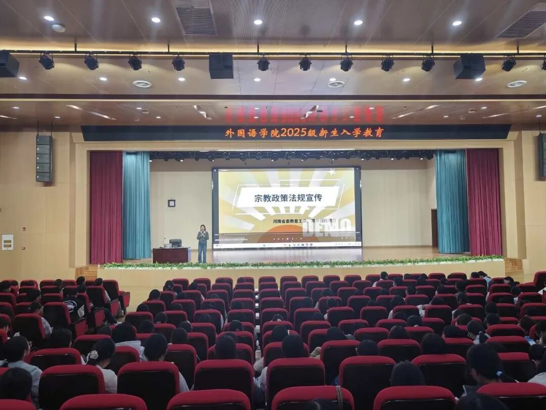 9月19日上午,外国语学院在文渊楼报告厅组织开展2025级新生党的宗教政策法规专题讲座。本次讲座由外国语学院党委副书记王伟主讲,外国语学院2025级全体新生参加。