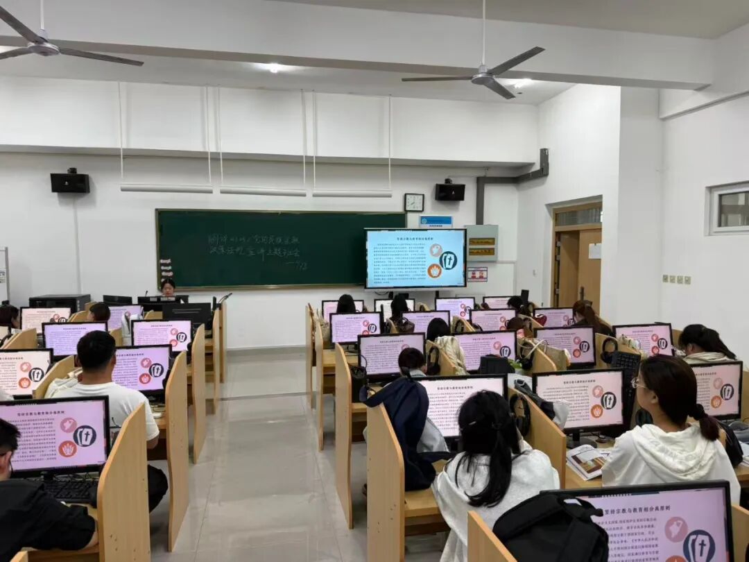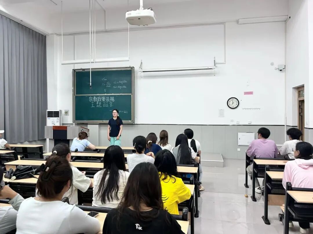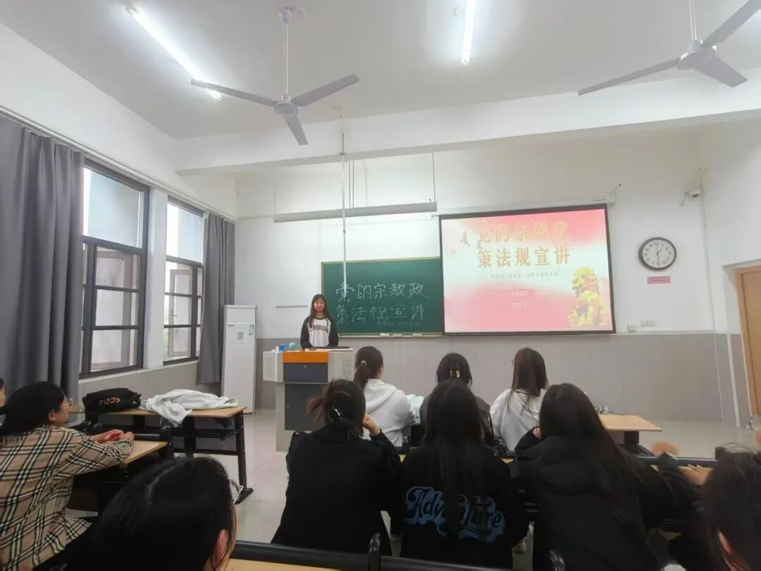 为强化学生对党的宗教政策法规的认知,筑牢校园思想防线,外国语学院近日组织各年级学生以主题班会形式开展党的宗教政策法规宣讲教育活动。