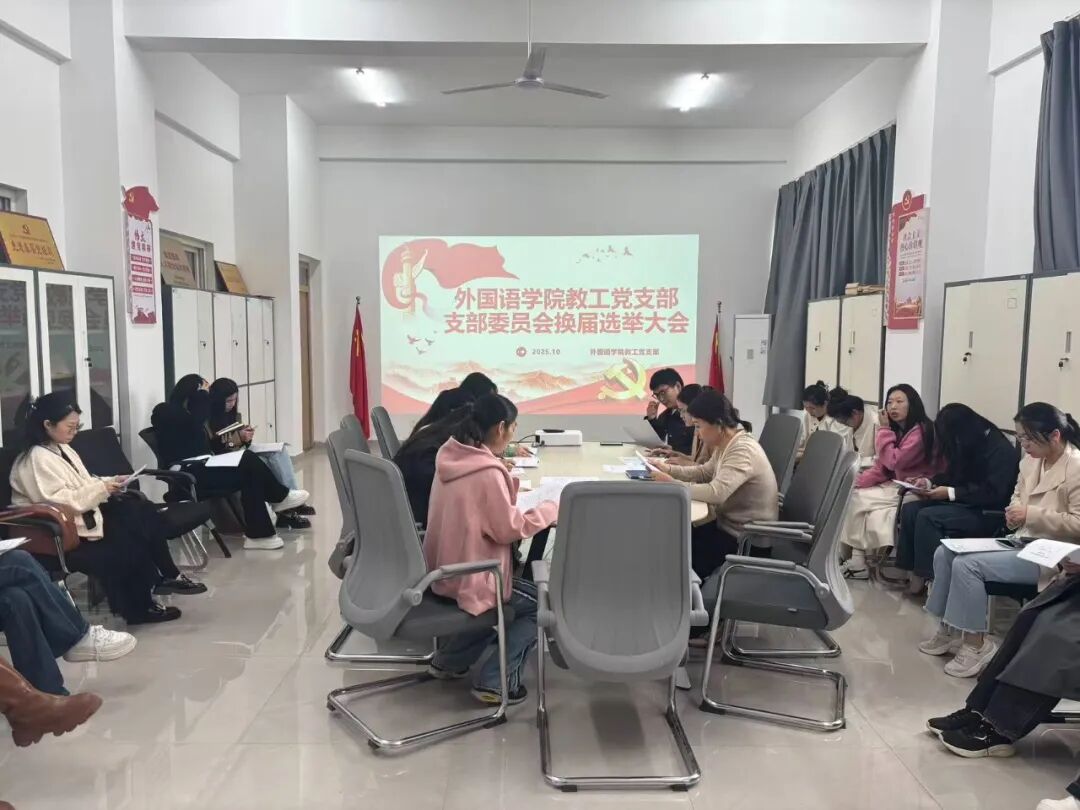 本次换届选举进一步完善了外国语学院教工党支部的组织架构,为后续工作的顺利开展奠定了基础。全体党员一致表示,将在新一届支部委员会的带领下,不忘初心、牢记使命,以更加饱满的热情投身教学、科研与育人工作,为学院和学校高质量发展贡献更多力量。