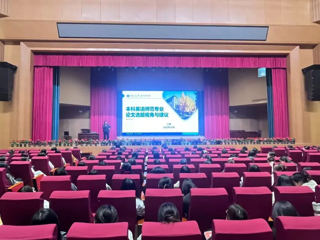 10 月 31 日下午,外国语学院于B3报告厅举办“本科英语师范专业论文选题视角与建议”专题讲座。本次讲座邀请河南师范大学硕士生导师王晔副教授担任主讲,外国语学院院长梁晓冬主持,学院全体教师、英语专业大四学生共同参加了此次讲座。