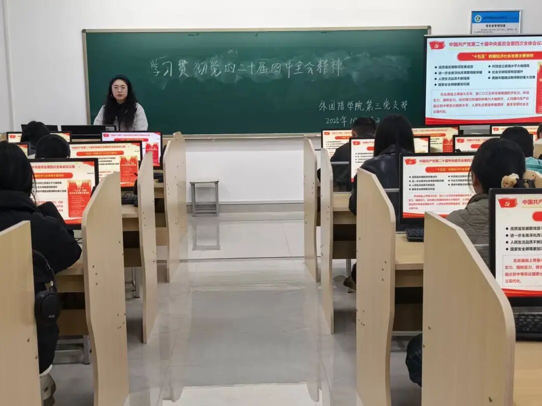为扎实推进党员发展工作,严把党员“入口关”,同时深入学习领会党的二十届四中全会精神,切实把支部成员思想和行动统一到全会决策部署上来。10月29日,外国语学院第三党支部在教二语音室一召开确定发展对象讨论表决大会暨学习贯彻党的二十届四中全会精神主题党日活动。会议由党支部书记崔亚莉主持,支部党员及24级部分同学参会。