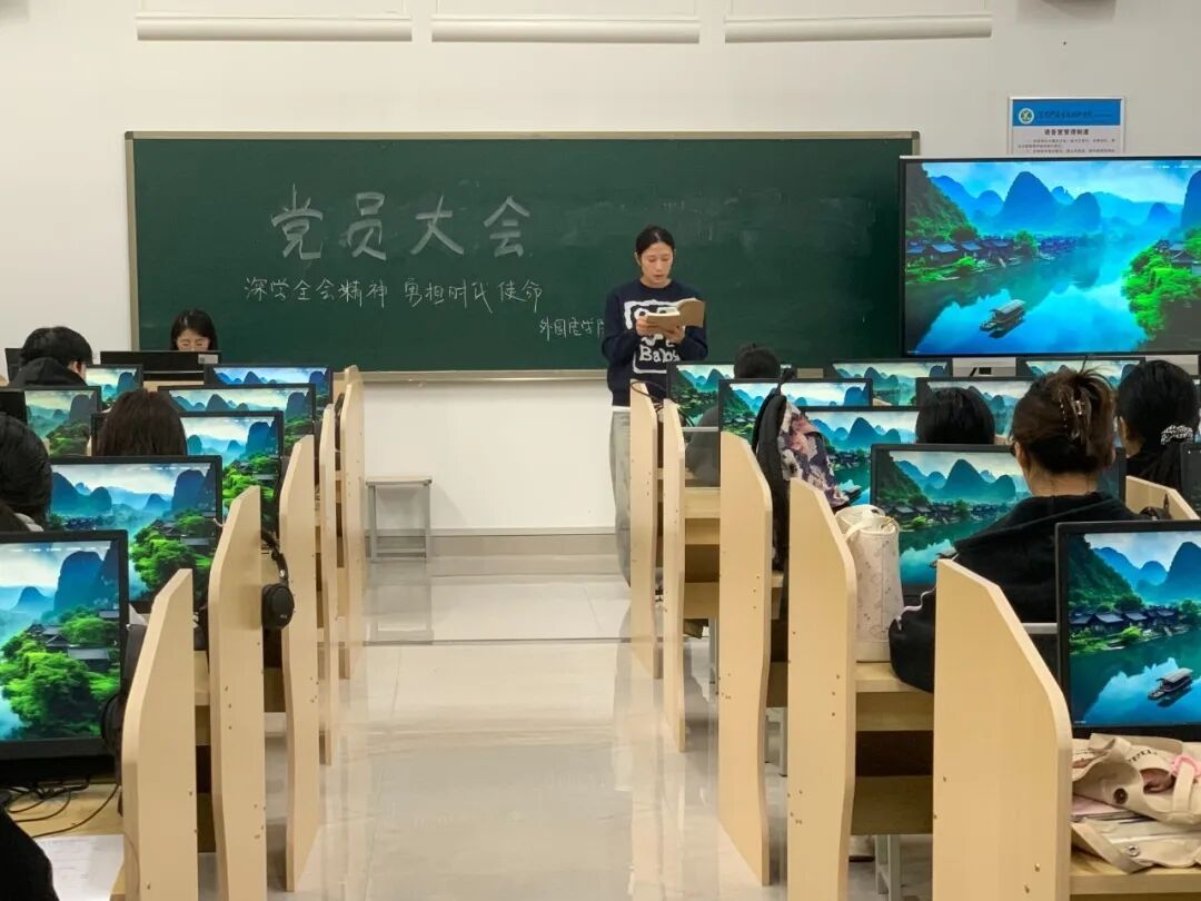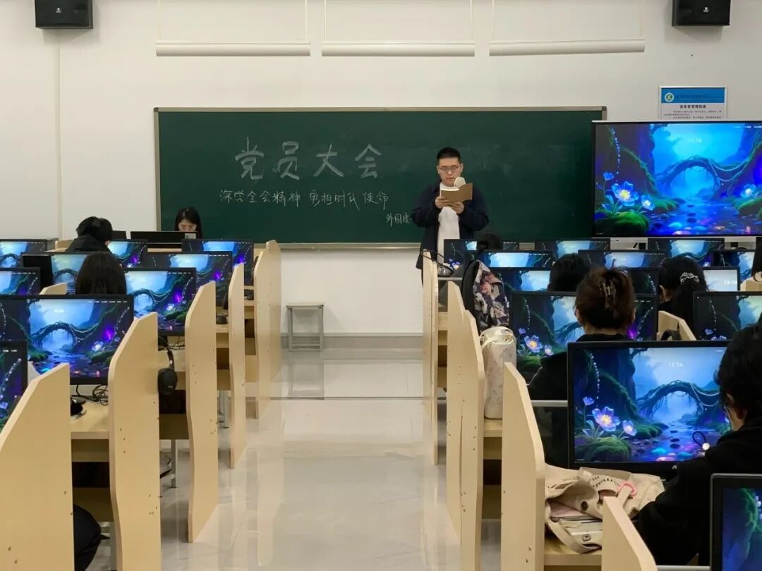 为从严把党员发展“政治关”,深刻学习领会二十届四中全会精神,10月30日,外国语学院第一党支部于第二教学楼语音室1召开党员大会暨主题党日活动,支部全体党员和23级学生代表参会,会议由支部书记殷可主持。