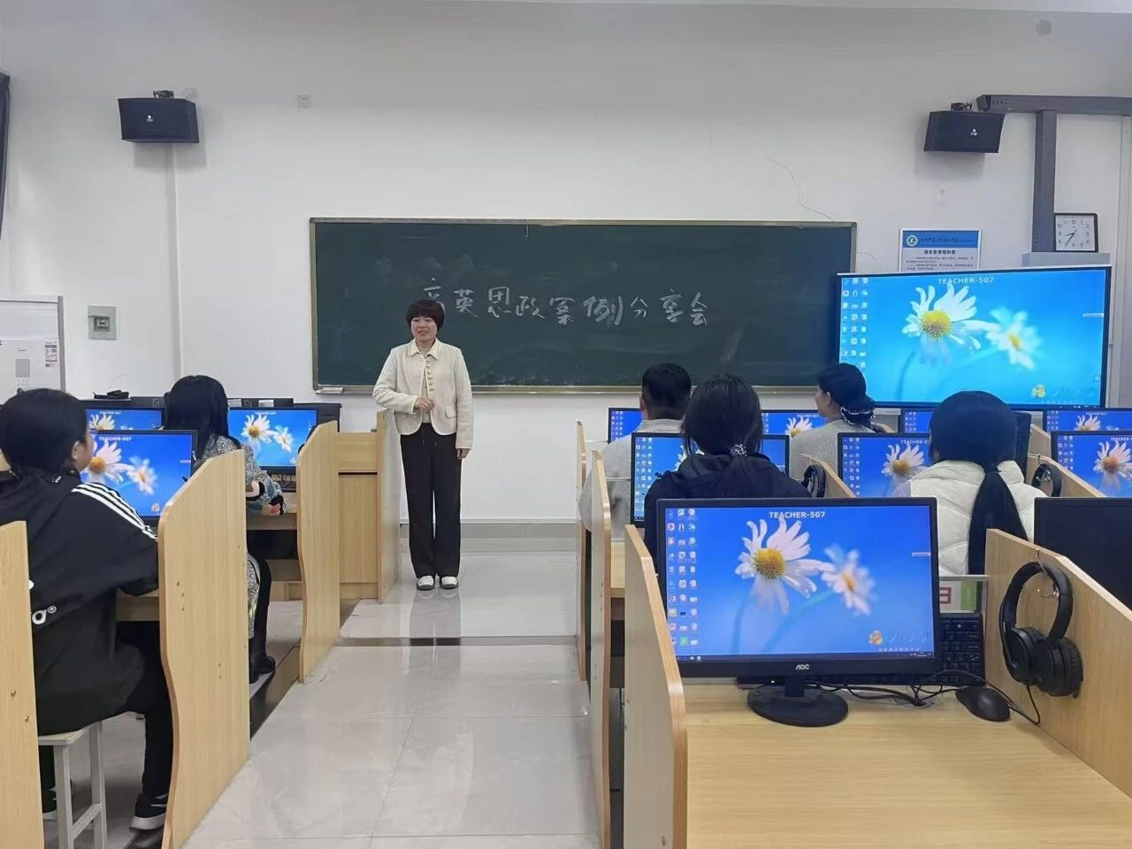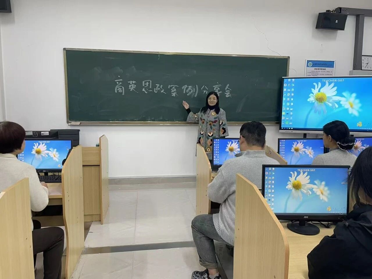 会上,教师代表结合商务英语专业课程特点,分享了思政元素融入教学的实践案例:赵亚丽教师以专业课程为依托,通过外贸沟通案例融入“诚信合作”“互利共赢”的价值理念;赵莉莉教师聚焦商务英语谈判教学,结合中国企业国际化案例,引导学生在跨文化沟通中传递中国商业理论知识。分享案例贴合专业实际、方法可操作性强,引发在场教师的热烈讨论,大家结合自身教学实践交流思路,现场互动氛围浓厚而热烈。