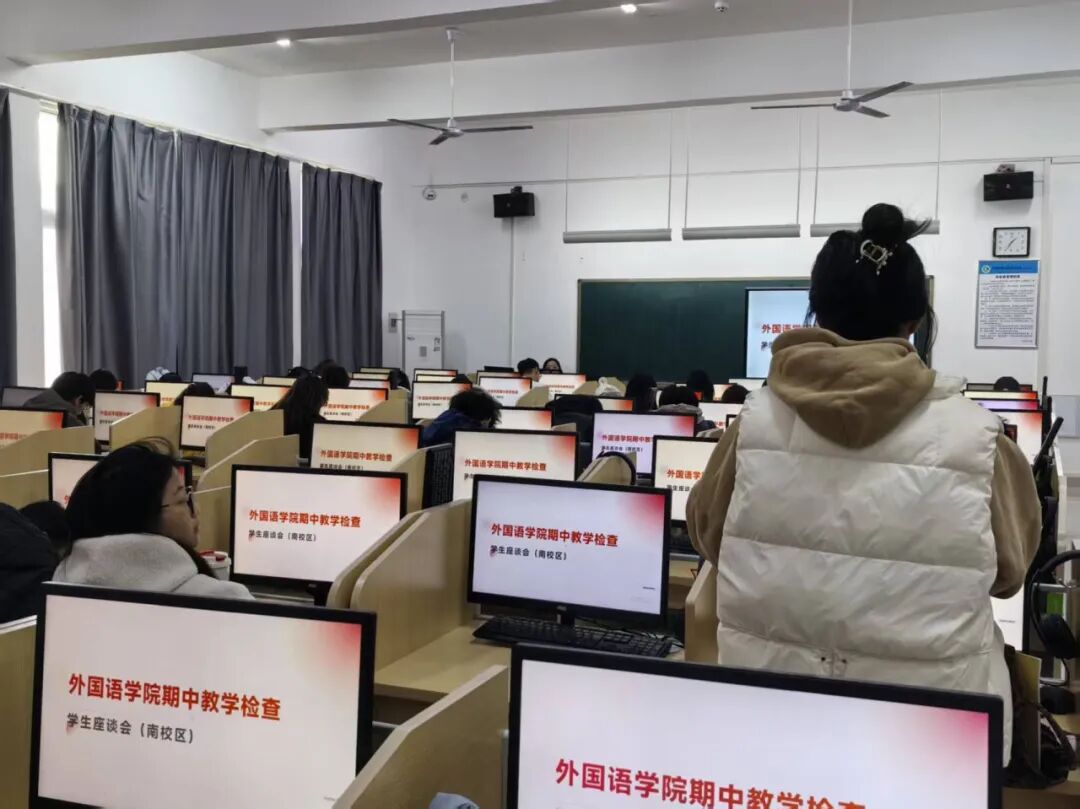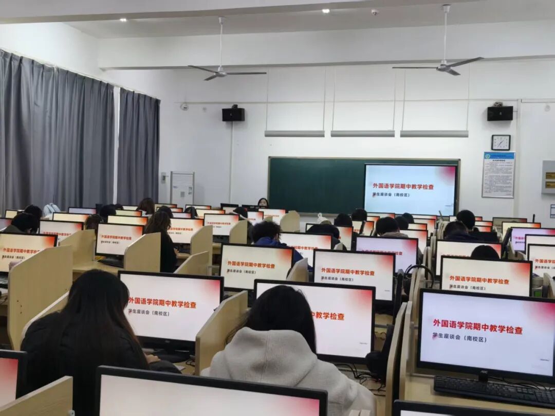 为推动我院教学质量的发展,外国语学院于11月5日中午13:20在语音室3召开南校区期中教学检查学生座谈会,会议由外国语学院副院长张帆、英语教研室主任牛莉莉、翻译教研室主任王世宇、教务员杨晓涵和23级、24级、25级专升本学委及学生代表参会。