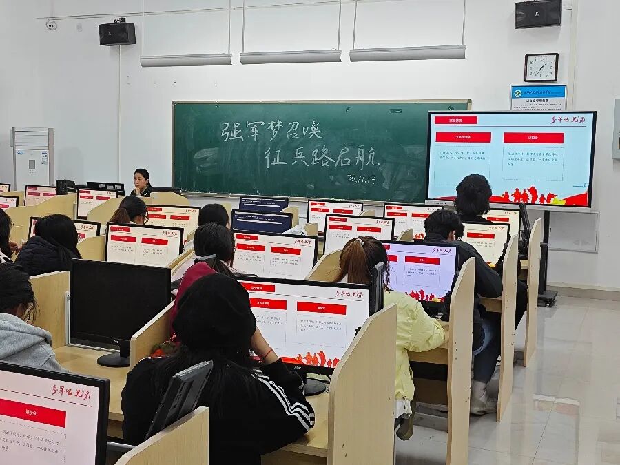 交流会上,崔亚莉老师首先强调了大学生征兵工作的重要意义,鼓励同学们将个人理想与国家需求紧密结合,主动投身国防建设,在军营中锤炼品格、增长才干。随后,主讲人闫子静围绕围绕“强兵梦召唤,征兵路起航”这一主题,聚焦征兵核心政策展开详细讲解,从入伍基本条件、学历优待、经济补助等同学们关心的要点入手,用通俗易懂的语言逐一拆解;同时,她结合自身了解的实际案例,清晰梳理了从网上报名、体检政审到定兵入伍的完整“流程”,让同学们对征兵环节有了直观且全面的认识。