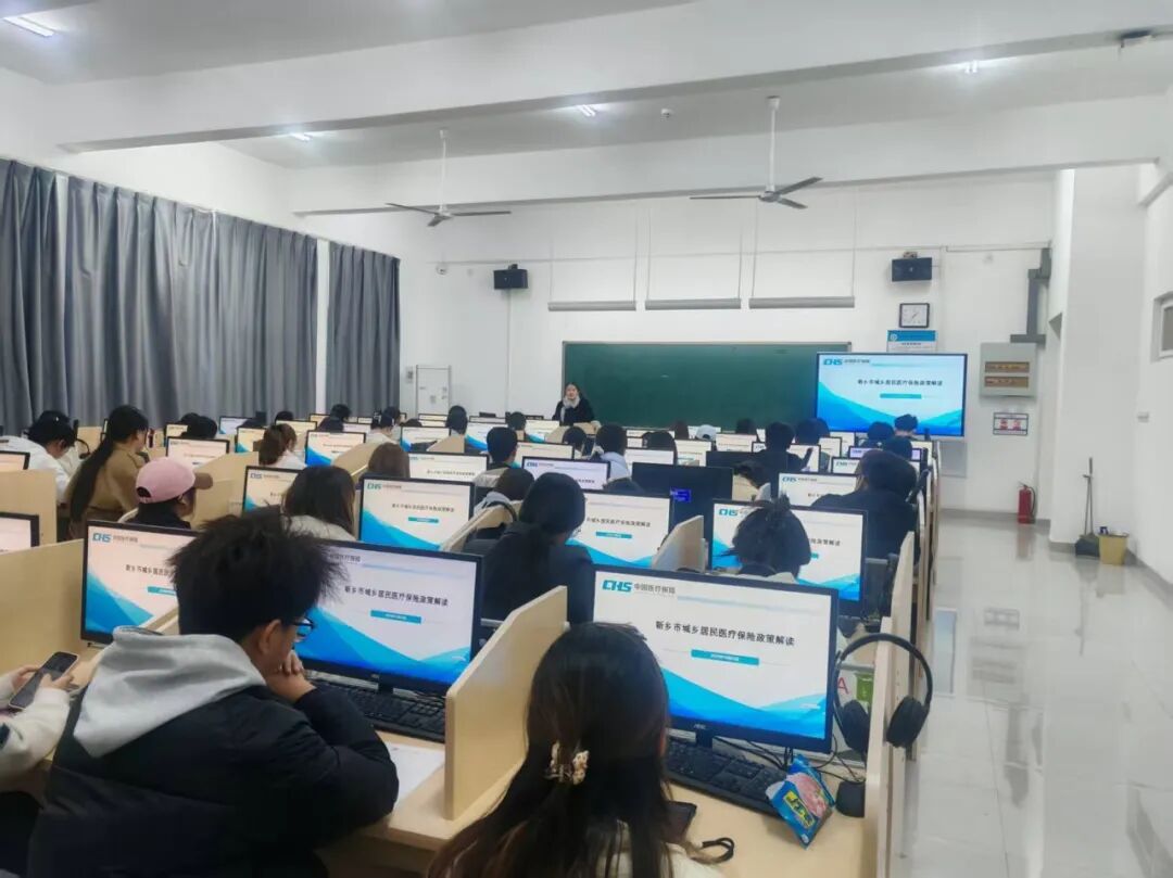 此次医保政策进校园中,外国语学院各级辅导员针对参加城乡居民医疗保险的范围和对象、缴费标准、时间和待遇享受期、信息采集与缴费、城乡居民基本医疗保险待遇、城乡居民大病保险医疗待遇、医疗救助待遇等方面进行阐释。其中,城乡居民医保政策中特别提及,异地长期居住人员参保缴费后,可通过“河南医保”小程序、国家医保服务平台APP等线上渠道,或医保窗口线下申请备案,备案后在居住地联网定点医院住院可直接结算费用。异地转诊转院人员需先在本市有转诊资质的定点医院开具手续,再到参保地医保机构备案并办理电子转诊,未按规定备案的(急诊、精神病除外),住院费用报销比例将降低20个百分点。