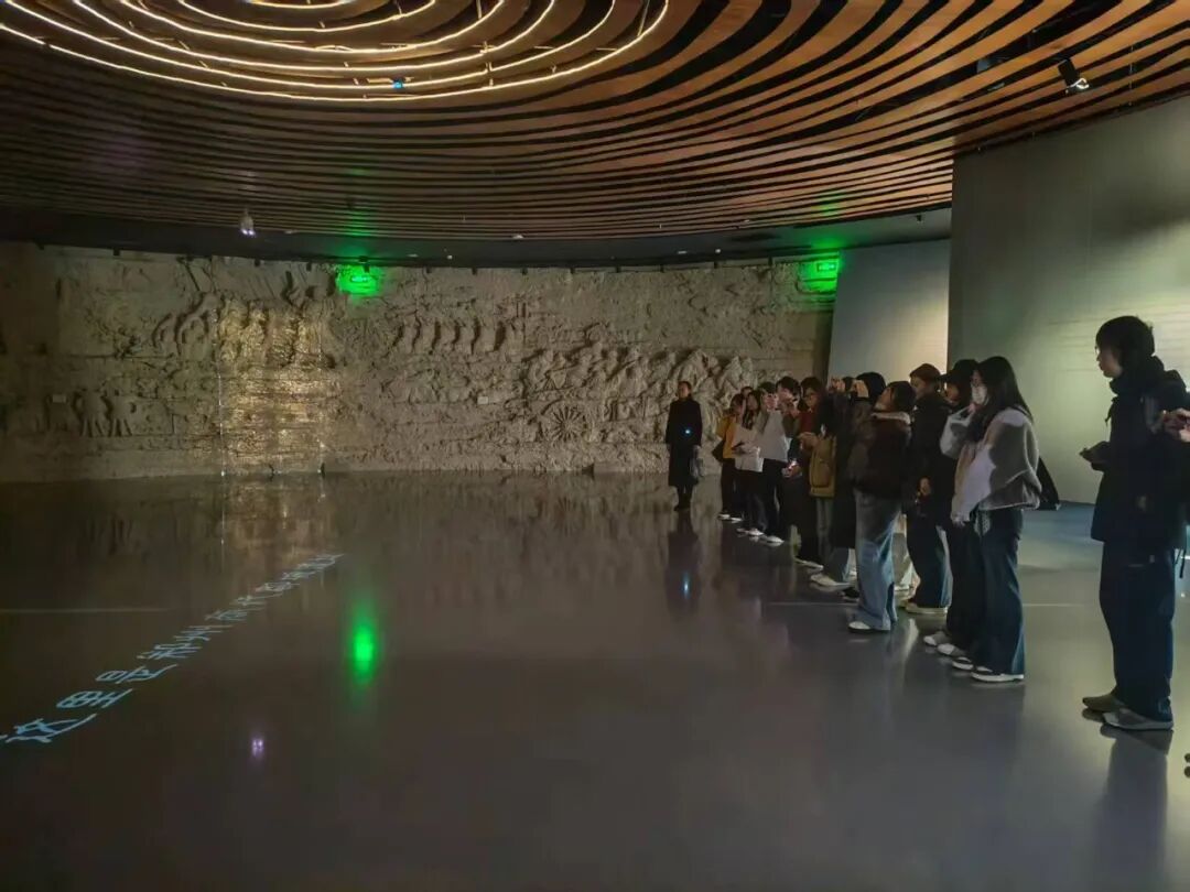 活动围绕“黄河文化主题笔译”有序推进。师生首先跟随讲解员参观展厅,了解商代都城遗址与黄河文明的历史关联,同步采集文物介绍、文化展板等笔译素材。随后以小组为单位,结合笔译理论对展厅内的文化负载文本展开现场研讨,梳理直译、意译等策略在文化传播类文本中的适配方法。活动尾声,师生结合实地观察的文化细节,明确了后续校内笔译实训的素材筛选与实践方向。现场学生专注记录、积极互动,实践氛围浓厚。