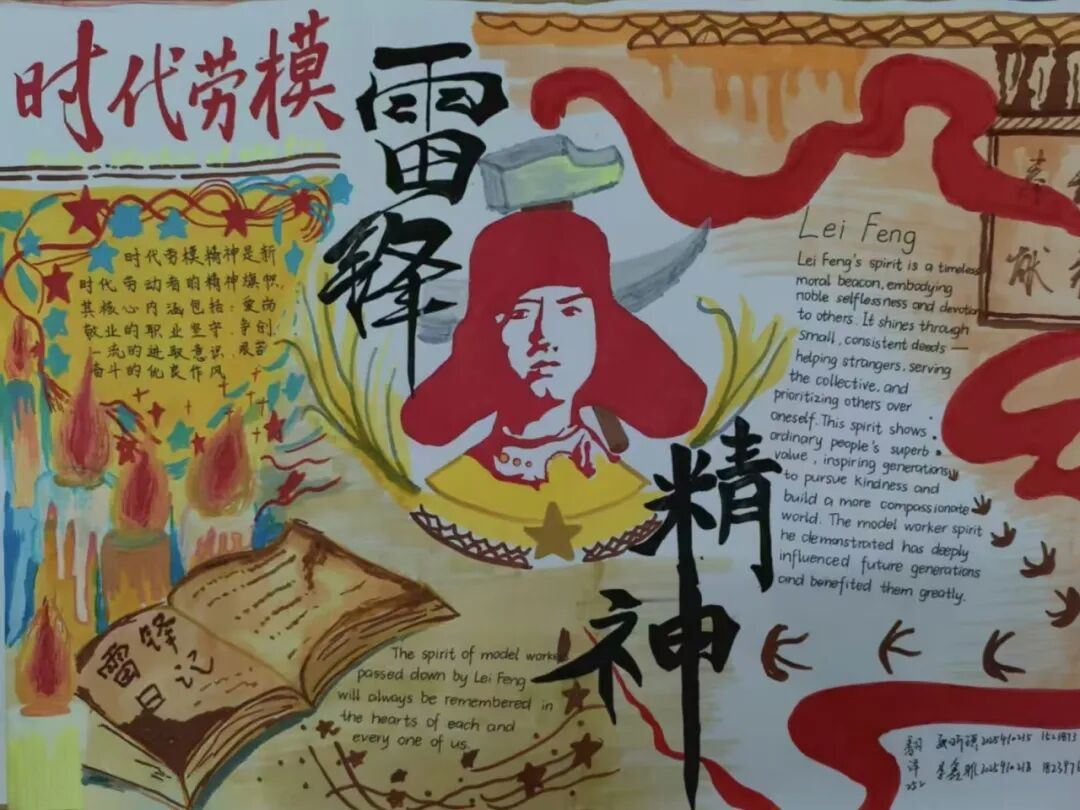 比赛得到了同学们的积极响应。在创作过程中,各专业同学充分发挥学科特色,从不同视角诠释了新时代的劳动精神。英语(师范)专业的同学,将目光聚焦于教育领域的楷模。他们以“燃灯校长”张桂梅用毕生托举山区女孩梦想的奉献精神,科学家黄大年“心有大我、至诚报国”的崇高境界为蓝本,深刻描绘了教育者践行初心使命的劳模精神与育人情怀。商务英语与翻译专业的同学,则深入挖掘了专业领域内的工匠典范。他们诠释了翻译界泰斗许渊冲“择一事,终一生”,将中国之美译给世界的执着;也致敬了“天眼之父”南仁东历时廿二载,只为打造大国重器的匠心梦想。一幅幅精美的手抄报,不仅是双语能力的展示,更是对榜样精神的深情礼赞与内化感悟