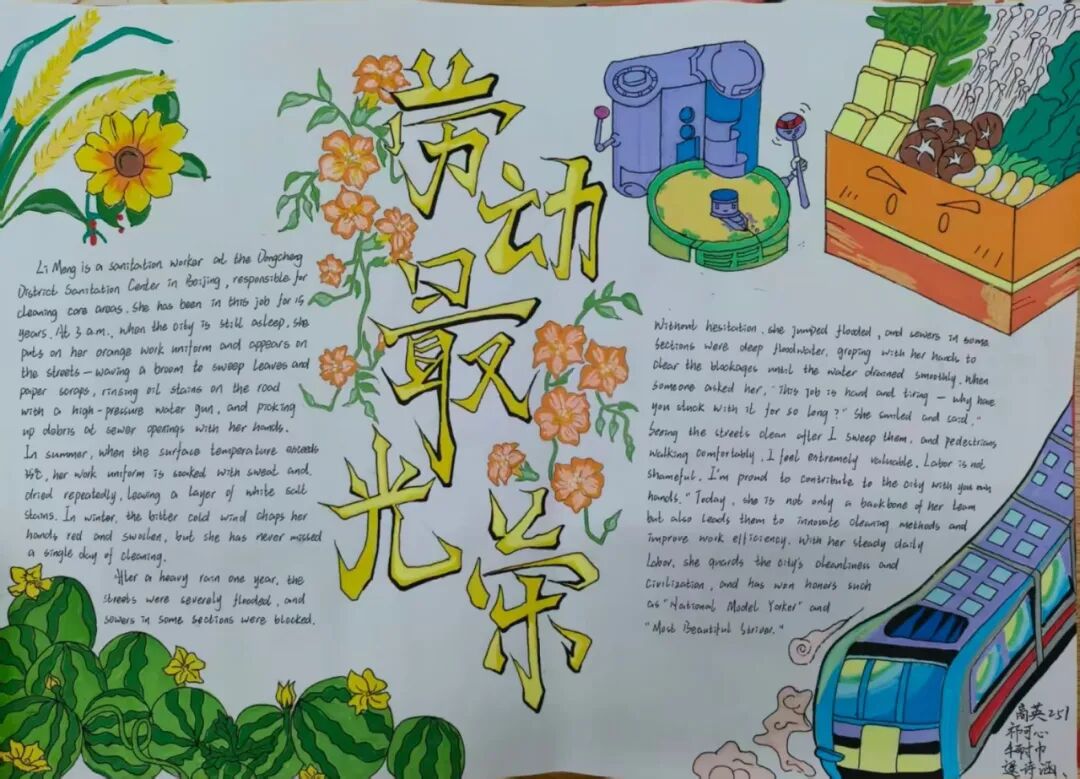 本次双语手抄报比赛,不仅是语言技能与艺术创作的练兵场,更是一堂意义深刻的劳动教育课。活动极大地激发了同学们的专业认同感与社会责任感,激励着大家以榜样为镜,立志未来在各自岗位上,以扎实学识践行劳动精神,用英语讲好中国故事,努力成长为担当民族复兴大任的时代新人。