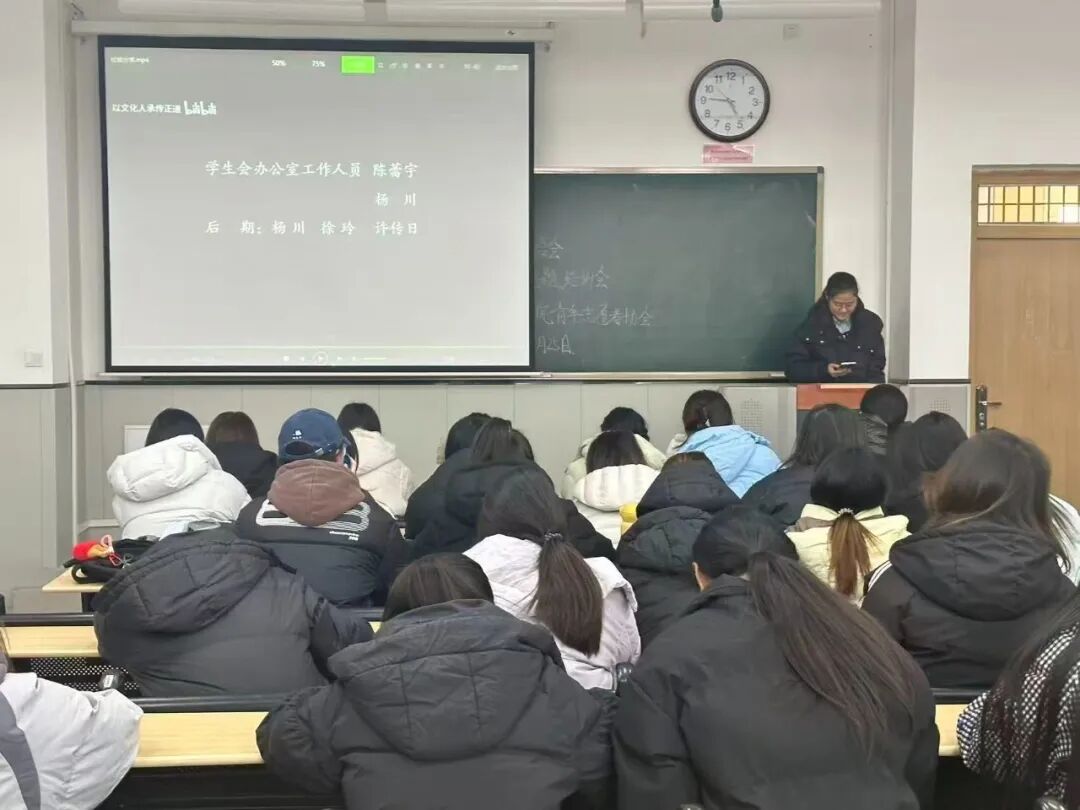 为深入学习习近平总书记致中国志愿者联合会第三届会员代表大会重要贺信精神,引导青年学生积极践行志愿服务理念,外国语学院青年志愿者协会于2025年12月25日在教学楼1-502组织开展专题学习会议。