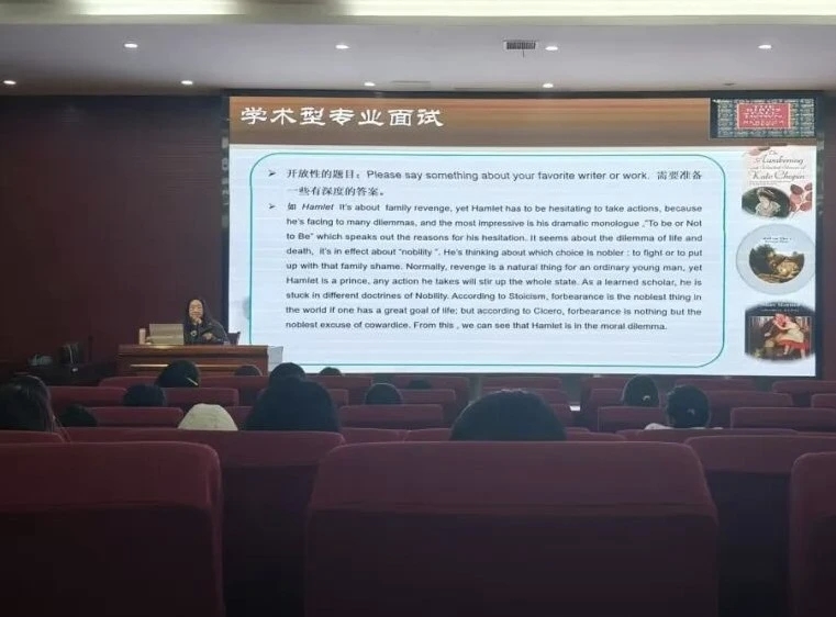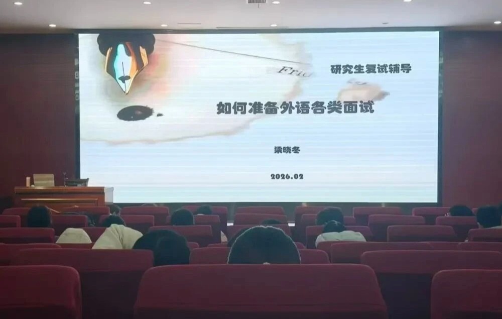 为赋能考研,助力复试,3月6日上午,外国语学院在X2报告厅举办考研复试专题指导讲座,由梁晓冬院长主讲,全体考研毕业生参会。讲座聚焦复试实战技巧,以实操演练与针对性指导,助力学子从容备战、顺利上岸。