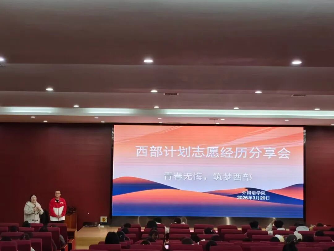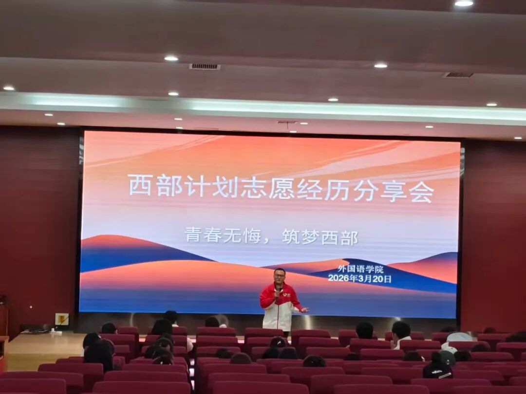为深入贯彻习近平新时代中国特色社会主义思想,扎实推进大学生志愿服务西部计划实施,引导青年学子以青春之力服务基层、筑梦西部,3月20日下午,外国语学院在学院楼报告厅成功举办西部计划志愿经历分享会。
