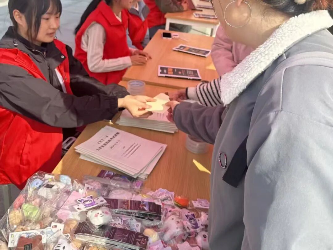 活动伊始,工作人员向到场同学详细讲解活动规则与奖励机制,引导大家全身心投入趣味英语互动环节。本次活动设置单词接龙大挑战、英语谜语猜猜乐、英语你画我猜三项核心游戏,现场同步开展、趣味十足。同学们热情高涨、踊跃参与、积极抢答,在轻松欢快的比拼中积累英语词汇,锻炼语言反应与思维能力,同时积攒奖励抽取资格,现场欢声笑语不断,氛围热烈浓厚。游戏之余,资料发放区集中为同学们免费提供四六级真题,同时指引大家领取电子版资料,一站式配齐备考干货。游戏结束后,同学们凭积分在奖励兑换区有序抽取并兑换英文书签、小玩偶等奖品。