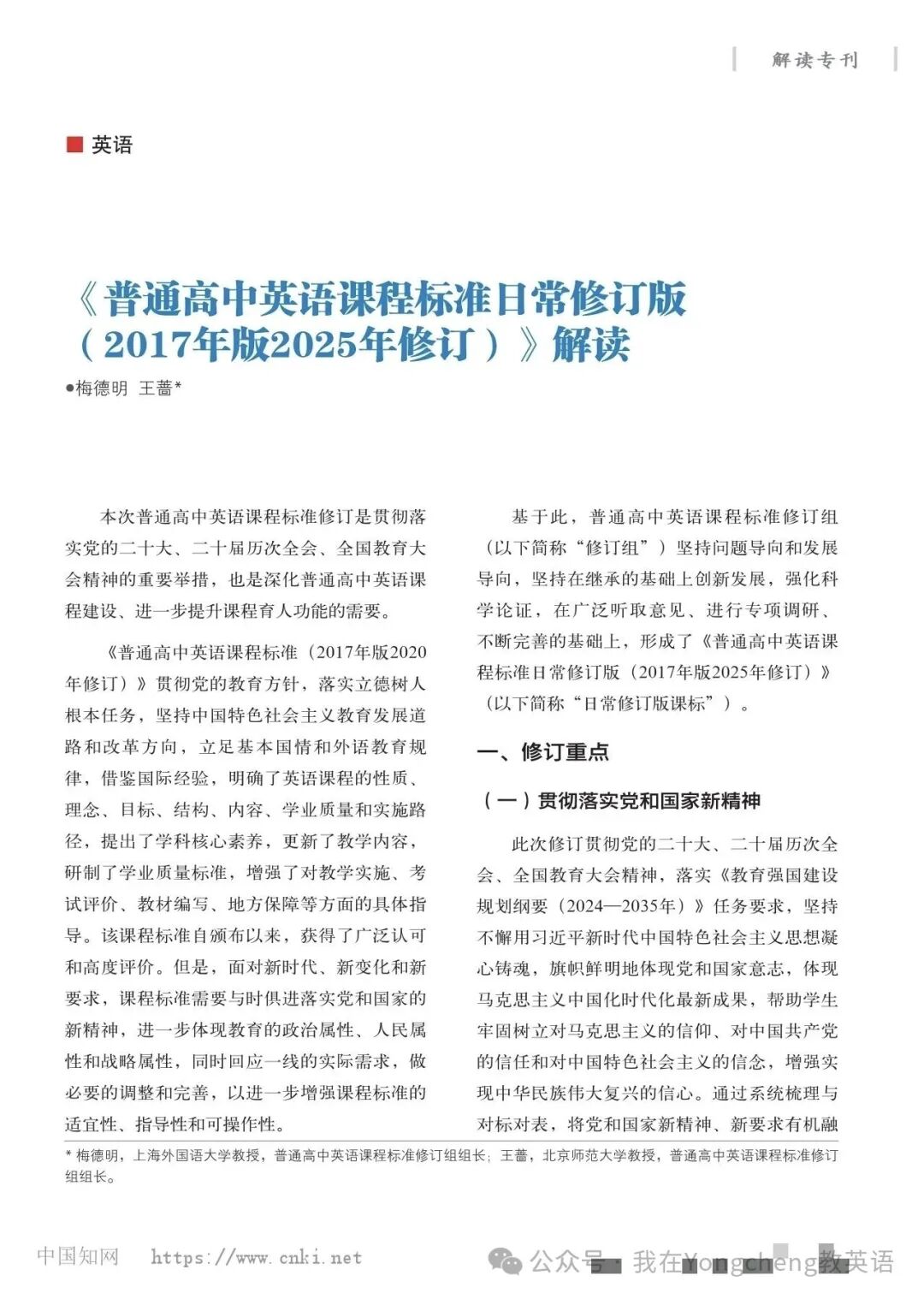 梅德明和王蔷教授对于2025版高中英语课标修订解读