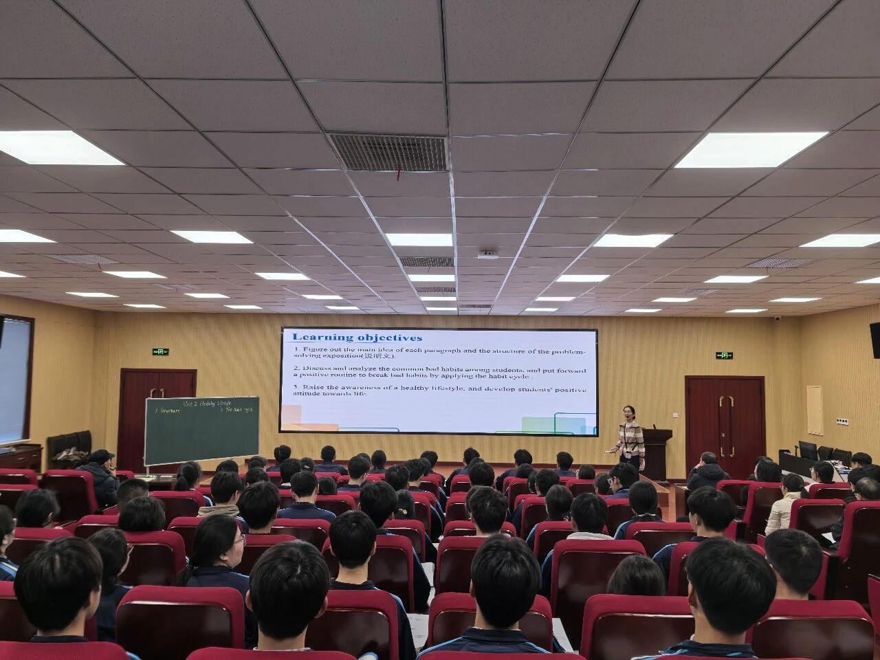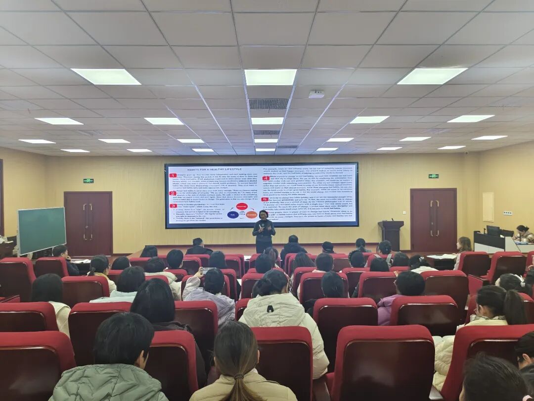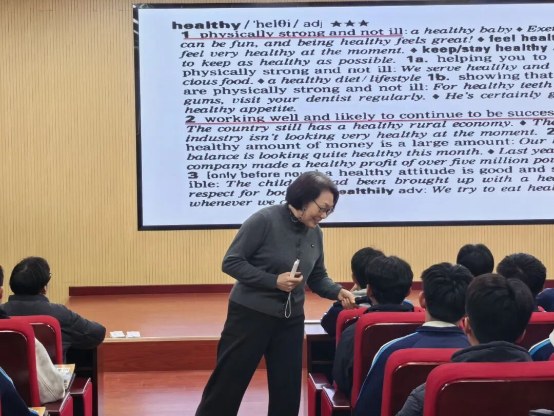 王彩琴教授的示范课在2406班开讲,全程由她亲自执教。与常见的逐段分析模式不同,王教授以“healthy”与“lifestyle”两词为切入点,迅速激活课堂氛围,自然过渡到文本核心。她随即巧妙设计了任务清晰的“reading game”,将全文十个段落分配给不同小组,引入“拼图阅读”教学法,引导学生主动展开探究。