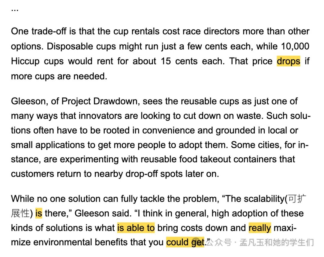 在孟老师的分析中,最令我赞赏的是她对人称选择的敏感。她注意到原文结尾用的是 you could get,而改编后变成了 we expect to get。