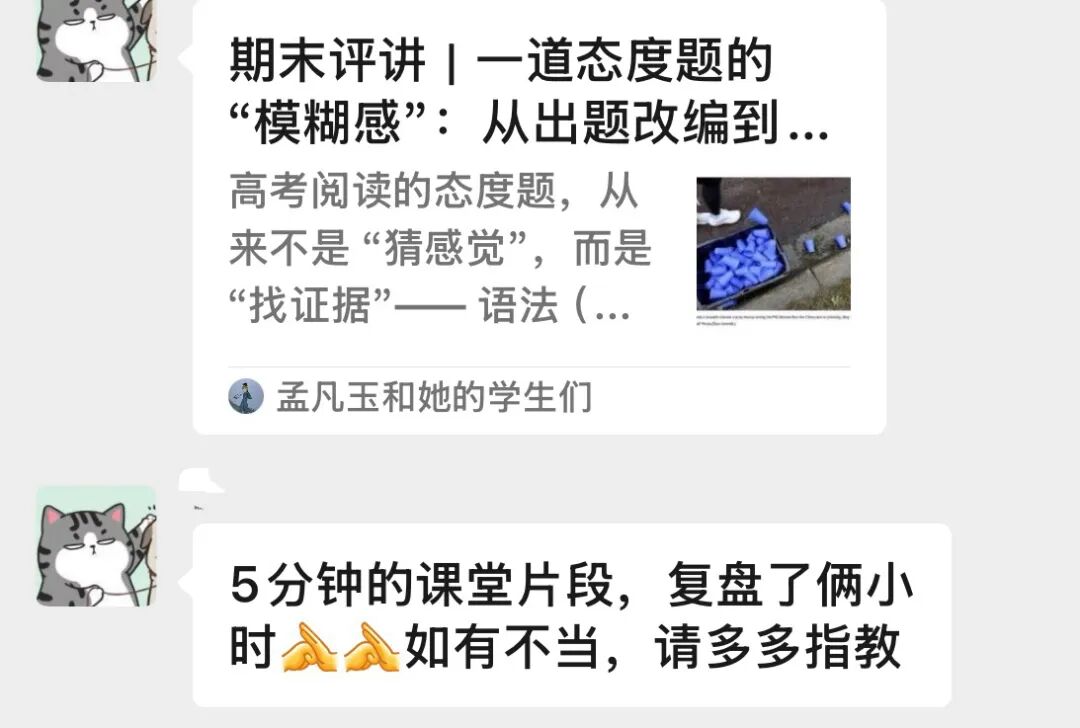 期末试卷评讲里,最容易发生的事情是把阅读题讲成“对答案”:这一题选 A,那一题选 C。可正因如此,当我看到孟凡玉老师在公众号里认真复盘一道态度题——从学生的语感困惑出发,追到外刊原文,再回到改编后的考题文本重建证据链——我的第一反应是:这种具备“研究者姿态”的课堂,在教学一线弥足珍贵。