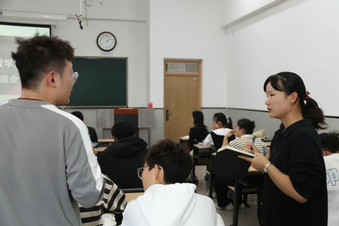 座谈会上,老师们强调利用期中教学检查座谈会的契机,广泛听取学生对教学安排、师生互动、学校管理等方面的意见,以便更好的开展教学各方面工作。学生们对于认真负责、教学能力强的老师予以了肯定,并反映了学校在教学进度、教学安排上存在的某些问题,张素杰老师和苏玖玲老师从专业学科的角度针对本专业同学们的意见做出耐心细致的解答。刘冰老师总结了此次座谈会的收获,也将学生们反映的意见分类整理反馈给各专业教师,在教学相长中共同进步。