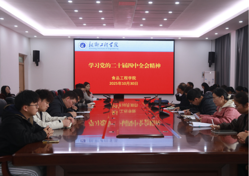 为深入学习贯彻党的二十届四中全会精神,进一步统一思想、凝聚共识,强化使命担当,食品工程学院于10月30日在综合实验楼201召开全院教职工政治理论学习会议。院党委常务副书记张晓娜主持会议,全体教职工参加学习。