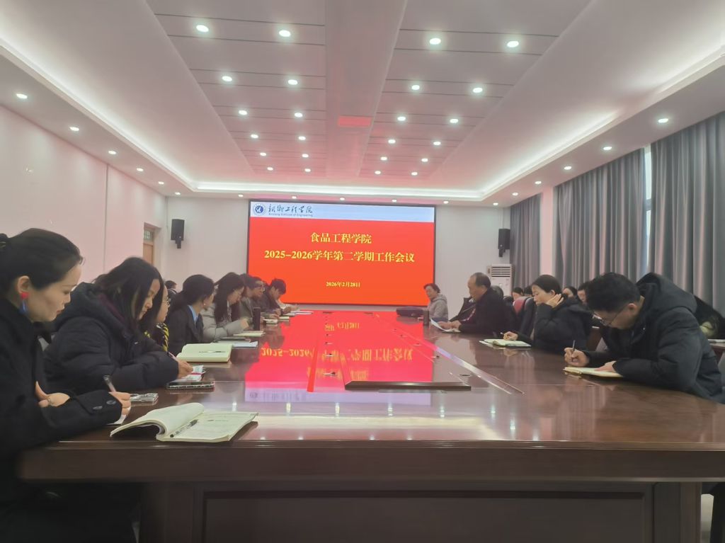 2月28日下午,食品工程学院在B1#201会议室召开2025-2026学年第二学期工作会议,全面部署新学期重点工作。学院领导班子、全体教师参加会议。