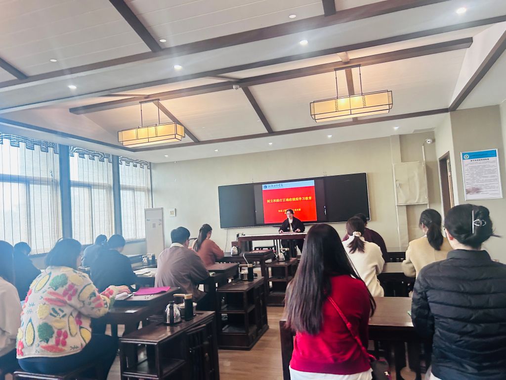 会上,孙华迪书记向全体党员传达了上级党委及学校党委关于开展政绩观学习教育的文件精神与工作要求,深刻阐释了此次专题学习教育的重要意义、核心目标与重点任务,明确指出树立和践行正确政绩观是新时代党员干部履职尽责、担当作为的根本遵循,对推动学院教学科研、人才培养、社会服务等各项工作高质量发展具有关键作用。