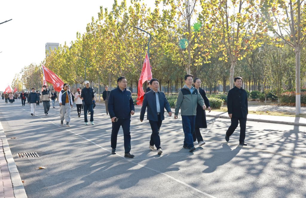 为落实全民健身国家战略,营造健康文明、昂扬向上、全员参与的体育运动氛围,提升教职工体育锻炼积极性,11月19日下午,我校举行2025年教职工健步行暨“冬季健身月”活动启动仪式。校党委书记姚远峰、副书记张永福、副校长赵瑞玲、张彦军、韩国立出席仪式。