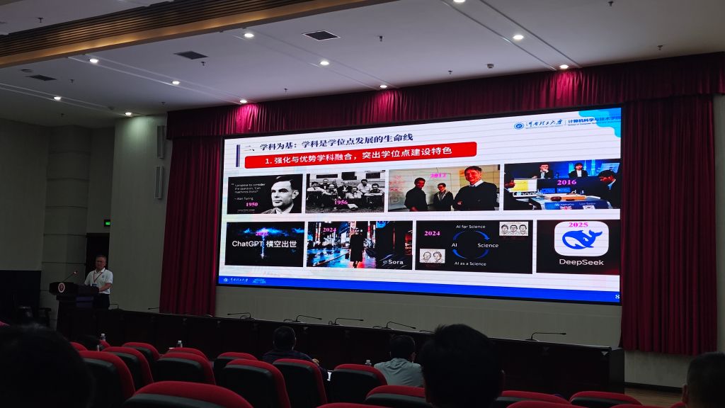 本次论坛以“人工智能赋能学科建设、产教融合新范式、区域算力资源共享”为核心主题,旨在探讨新质生产力要求下AI如何助力专业建设优化、推动传统高等教育向“人工智能+高等教育”的数智化转型,并深入研讨人工智能安全与科学伦理等重要议题。论坛期间,我院代表积极参与多项专题研讨与交流活动,围绕人工智能通识课程体系建设、跨学科融合创新、产学研协同育人机制等关键问题,与兄弟院校分享了本院在人工智能教育与科研方面的实践经验和初步成果,并就未来合作可能性进行了深入探讨。