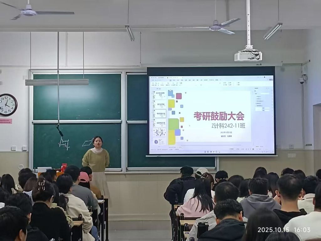 在主题班会上,各辅导员系统梳理了考研报名流程与关键时间节点,提醒学生合理安排进度、避免遗漏,并鼓励大家树立目标、增强信心。并通过分享往届学生的成功经验,帮助同学们明确方向、缓解焦虑。