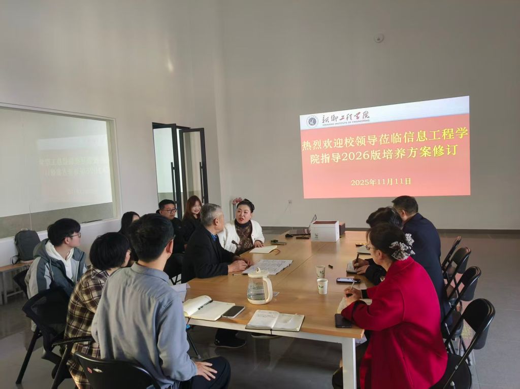 为进一步优化人才培养体系,精准对接行业发展需求,11月11日,信息工程学院组织召开2026版培养方案制定研讨会。执行校长罗士喜、校务顾问陈广文、教务处常务副处长王秀鸽出席会议并指导工作,信息工程学院学院院长王晓东、副院长焦红艳、张琛,教学秘书郭磊及各教研室负责人参加会议,共同为新版培养方案的完善建言献策。