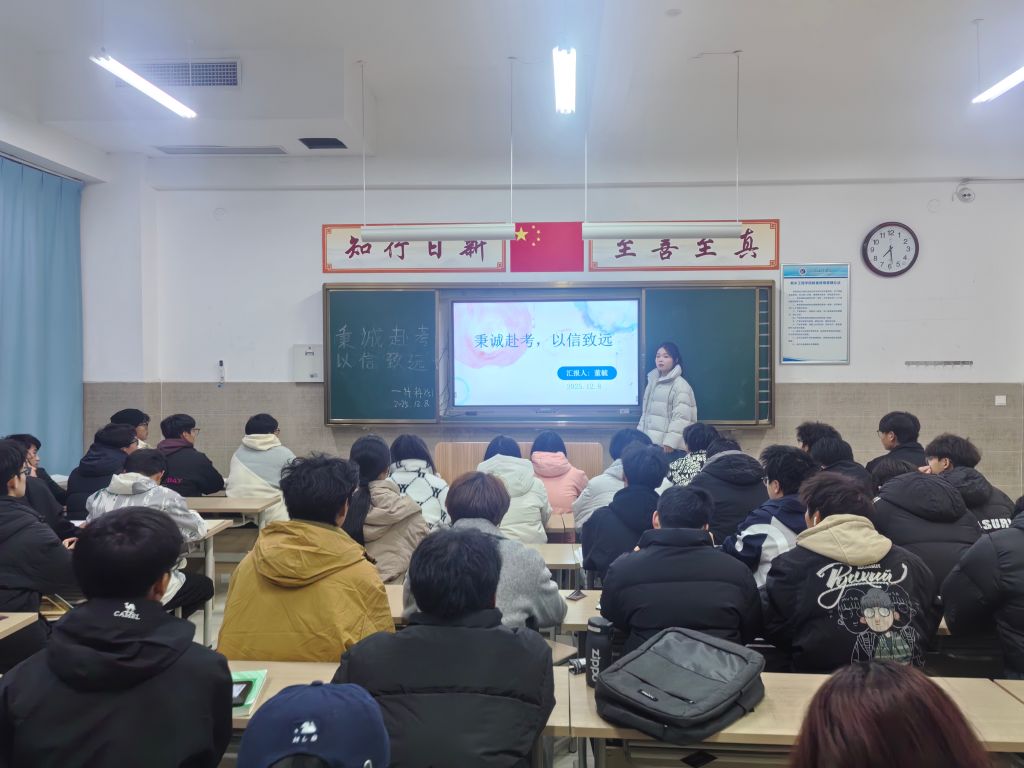 为了强化学生的诚信应试意识,引导大家树立正确的考试观,自觉抵制作弊等不诚信行为,维护公平公正的考场秩序,12月4日至12月8日,信息工程学院各团支部分别开展“秉承赴考,以信致远”主题团课活动,各支部全体团员积极参与。