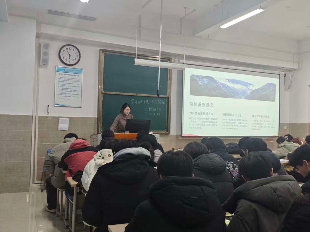 大数据251团支部通过原文领学、要点解读、视频展播等形式,团干部带领同学逐字研读贺信原文,梳理总书记对青年的要求与期许,结合时代背景阐释贺信的理论与实践价值,让同学们全面把握精神内核。此次班会让同学们真切感受到总书记的关怀与厚望,也明确了自身的时代责任。未来,班级将持续深化贺信精神学习,搭建实践研学、创新创业等平台,推动同学们把学习成果转化为实际行动,以青春奋斗回应总书记的殷切期望。