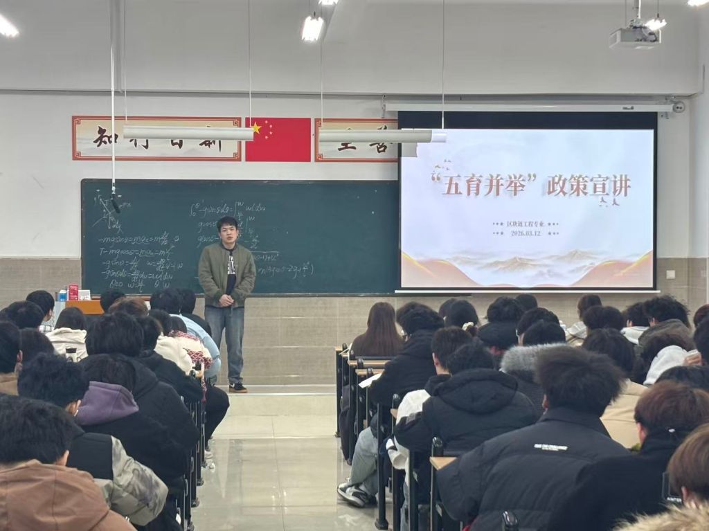 班会中,辅导员系统阐释了“五育并举”育人模式的核心内涵,结合学院的相关工作范式,详细解读了德育铸魂、智育赋能、体育固本、美育浸润、劳动塑格的实践路径。通过国家级竞赛获奖案例、寒暑假社会实践成果等鲜活素材,具象化展示了五育融合的育人成效。针对大一年级学生的特点,明确了综合素质评价的具体要求。引导学生们将体育锻炼、劳动实践、美育熏陶融入日常,制定全面化的发展计划。