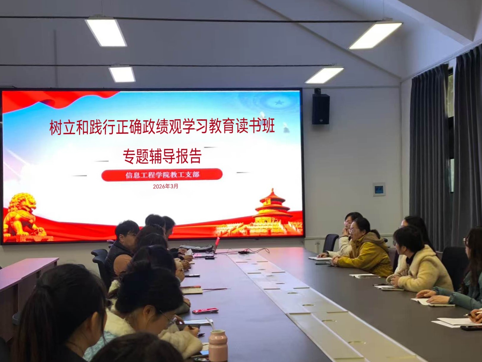 为深入贯彻落实学校树立和践行正确政绩观学习教育读书班部署要求,切实把正确政绩观融入学院办学治教、人才培养全过程,智能工程学部信息工程学院党委理论学习中心组与各党支部分层分类开展专题学习活动,推动学习教育走深走实、见行见效。