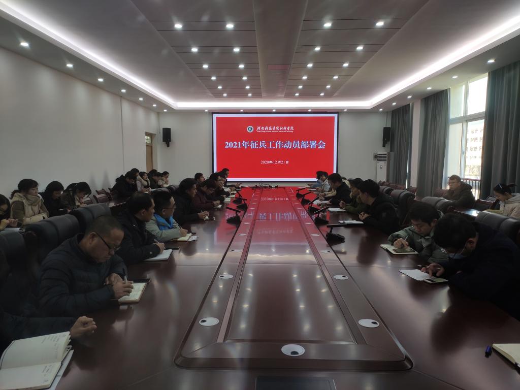 12月21日下午,我院在综合楼第一会议室召了2021年春季征兵工作动员部署会。院党委副书记张慧辉出席会议,各系思政专干、行政副主任以及全体辅导员参加此次会议。会议由学工部兼武装部部长程海军主持。