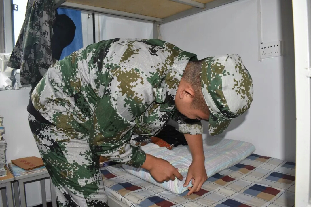 法学181班江帅迪说道:“教官整理内务时的严谨态度非常值得我们去学习,身为大学生的我们,做人做事要认真严谨!”