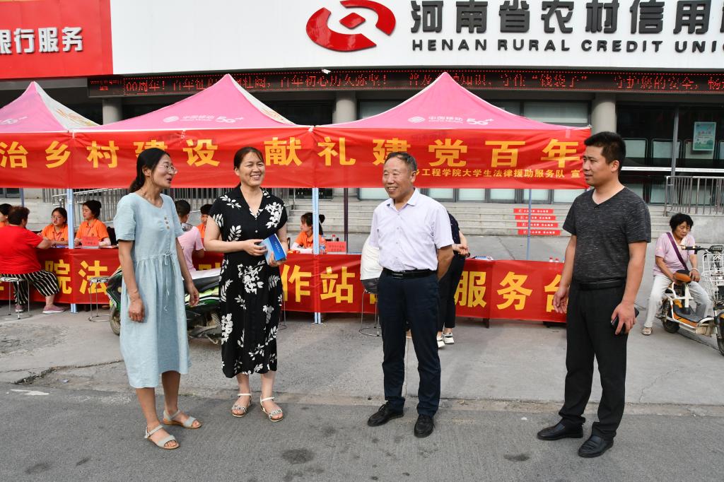 7月6-12日,我院党委副书记王秀金、张慧辉,学工部部长程海军、团委书记刘荣乾深入获嘉县冯庄镇、新乡县大召营镇、延津县胙城乡,看望慰问了我院“绘美中原”社会服务团、大学生法律援助服务队、传爱心火炬,筑我中国梦、预防未成年人溺亡服务团等社会实践团队的师生。