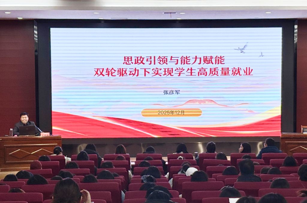 为引导学子树立正确的就业观与价值观,12月1日,副校长张彦军以“思政引领与能力赋能 双轮驱动下实现学生高质量就业”为主题,为艺术学院师生讲授了一堂深刻生动、内涵丰富的思政课。