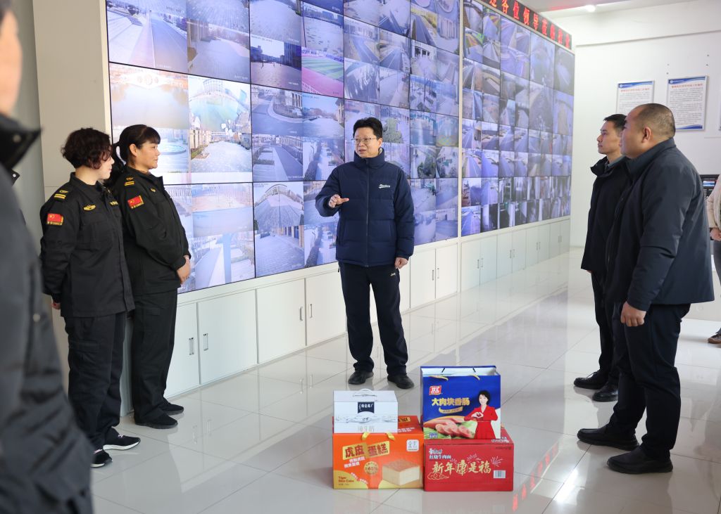 姚远峰一行先后前往南北校区门岗值班室、24小时总值班室、安防中心值班室等岗位,与值班人员互致新年问候,详细询问值班安排、应急预案、物资保障及值班人员生活情况,听取春节期间校园安全值守、应急处置等工作的筹备落实汇报,深入了解大家坚守岗位中的需求与困难。姚书记强调,校园安全是春节期间的重中之重,容不得丝毫麻痹松懈,希望全体值班人员切实提高政治站位,强化责任担当,以“时时放心不下”的责任感和“恪尽职守、永不懈怠”的坚守精神,严格落实值班值守制度,加强校园全域巡逻防控,细致排查各类安全隐患,规范做好值班记录,确保通讯畅通、响应及时、处置高效。同时,姚书记叮嘱大家在坚守岗位的同时注意防寒保暖,合理安排休息时间,以良好状态守护校园平安稳定和师生生命财产安全,为全校师生度过平安祥和的春节筑牢安全防线。