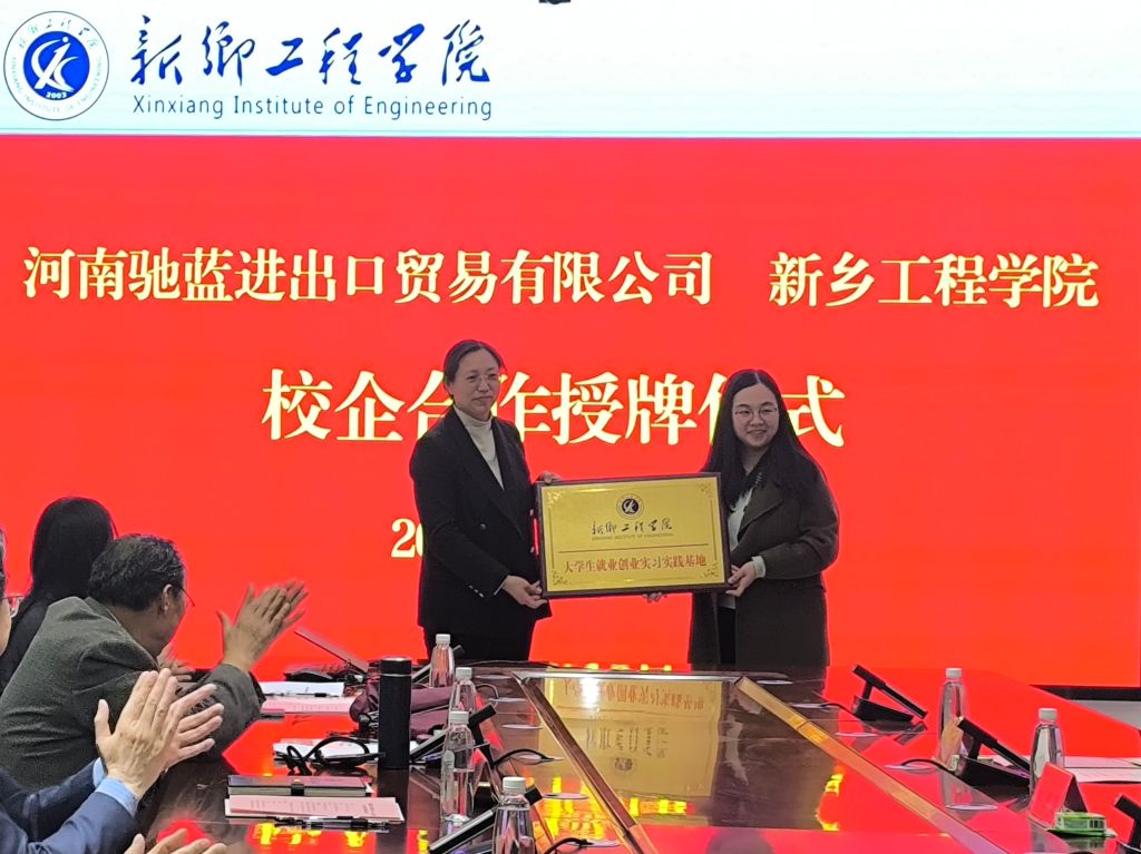 4月8日下午,我校与河南驰蓝进出口贸易有限公司校企合作签约暨授牌仪式在图书馆1113会议室举行。校党委书记姚远峰、副校长赵瑞玲、张彦军、艺术学院院长张建伟、河南驰蓝进出口贸易有限公司副总经理唐雯、融教慧联(上海)网络科技有限公司总经理张林峰等出席本次活动。双方将携手共建“大学生就业创业实习实践基地”,旨在深化产教融合,精准对接服饰外贸行业人才需求,为学子搭建从校园到职场的坚实桥梁。