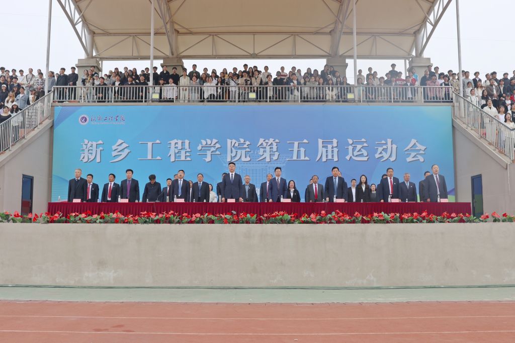4月16日,新乡工程学院第五届运动会在南校区盛大开幕。校董事长赵建永、党委书记姚远峰、执行校长罗士喜、副校长张彦军、韩国立、王晓东,校长助理李保江及相关职能部门和各学院负责人出席开幕式。
