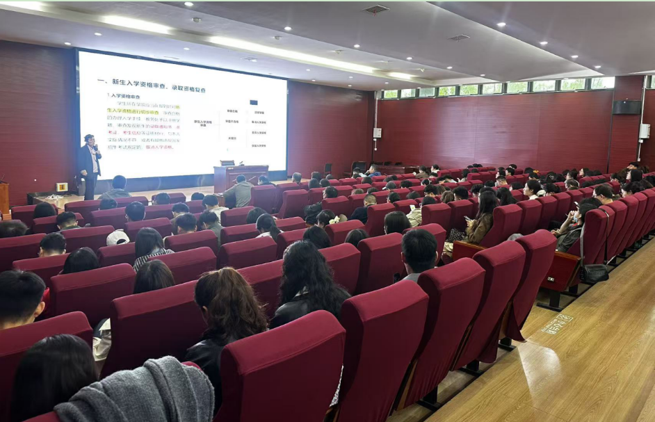 随后,王秀鸽结合《普通高等学校学生管理规定》及《新乡工程学院学籍管理规定》等相关文件,对休学、复学、转专业、退学、开除学籍等学籍异动管理业务进行了详细说明。她指出,学籍异动管理事关学生切身利益和学校教学秩序稳定,学籍管理工作应始终坚持以立德树人为根本,以服务学生成长成才为目标,不断加强对相关政策法规的学习理解,提升管理效能与服务温度,切实为学生提供规范、便捷、暖心的学业服务。