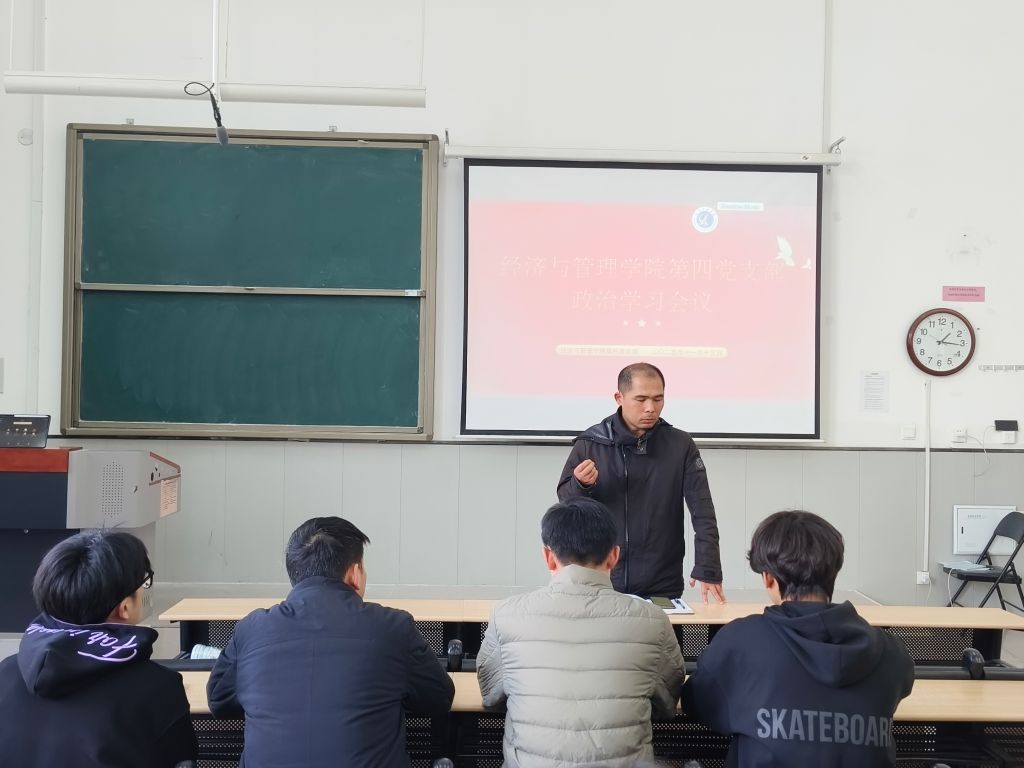 为深入学习贯彻党的最新理论成果与重要会议精神,切实提升支部党员的政治素养与理论水平,经管学院第四党支部于11月13日在教1-108教室成功召开第三次政治学习会议。院党委常务副书记张震及支部全体党员、预备党员参加会议。