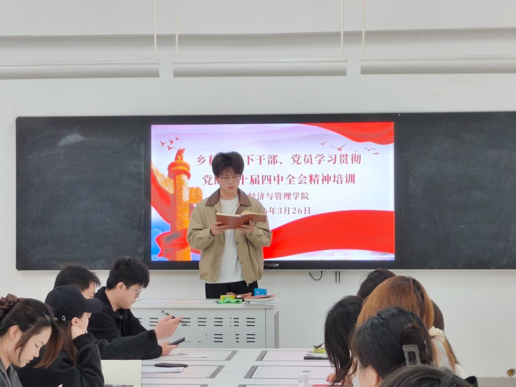 为深入学习贯彻党的二十届四中全会精神,引导广大干部、党员深刻领会“十五五”时期经济社会发展的指导思想与重大战略任务,3月26日下午,我院在教学楼2-313组织开展乡科级以下干部、党员学习贯彻党的二十届四中全会精神专题培训。全体科级干部、教工党员参加培训。