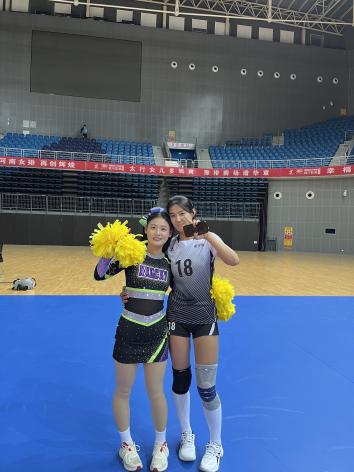 赛场上,比赛双方女排运动员在啦啦操队和现场观众的助威声中奋勇拼搏;赛场下,我校啦啦操队的精彩表演成为联赛中一道亮丽的风景线,为赛事增添了别样的活力与精彩。