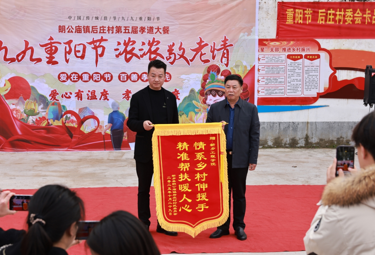 在重阳节来临之际,我校师生代表赴后庄村开展“九九重阳节·浓浓敬老情”主题文化活动。校党委副书记张永福出席活动并致辞,校团委师生志愿者为村民献上精彩文艺演出,以实际行动传承中华孝道文化。此次活动既是对中华传统美德的践行,也是对我校驻村帮扶工作成效的生动展示。