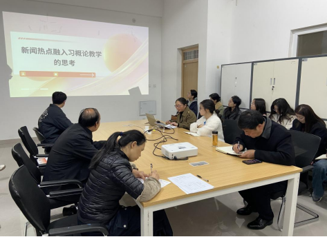 马艳红老师分享后,马克思主义学院各位教师进行热烈地交流和讨论。其中,李文平老师表示,新闻热点的融入,有助于提升课程教学质量和水平,可以通过新闻和旧事件相结合的方式,更好地体现社会思想的时代变迁以及在这一过程中思想政治教育所发挥的重要作用。何艳辉老师提到,热点新闻融入思政课堂的过程蕴含着从理论到案例再到理论的逻辑路径,这既需要日常关注热点、积累案例,又需要教师运用精妙的教学语言对热点进行加工处理,将理论与案例有机融合。