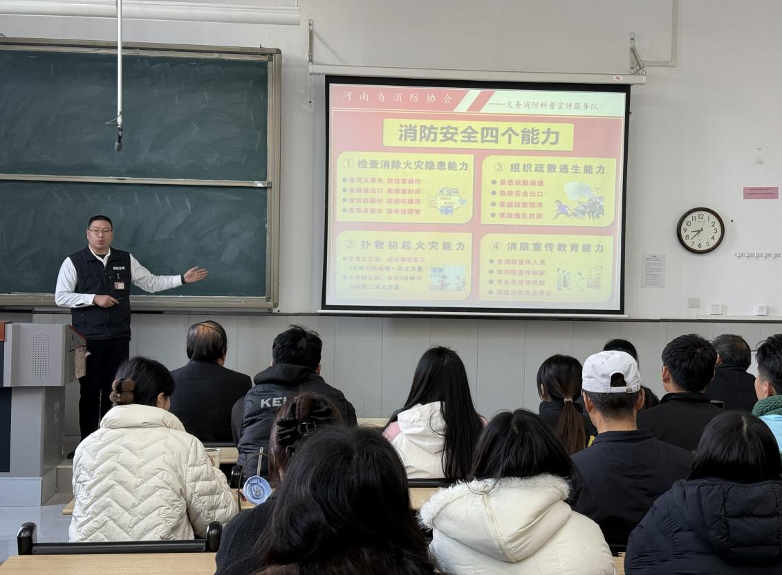 为进一步强化全院教师的消防安全意识,提升火灾预防、应急处置和自救互救能力,切实筑牢校园安全防线,马克思主义学院于11月26日上午,在1号教学楼106教室举办消防安全培训。本次培训特别邀请到河南省消防协会宣传服务队专家张迪担任主讲人,学院全体教职工到场学习。